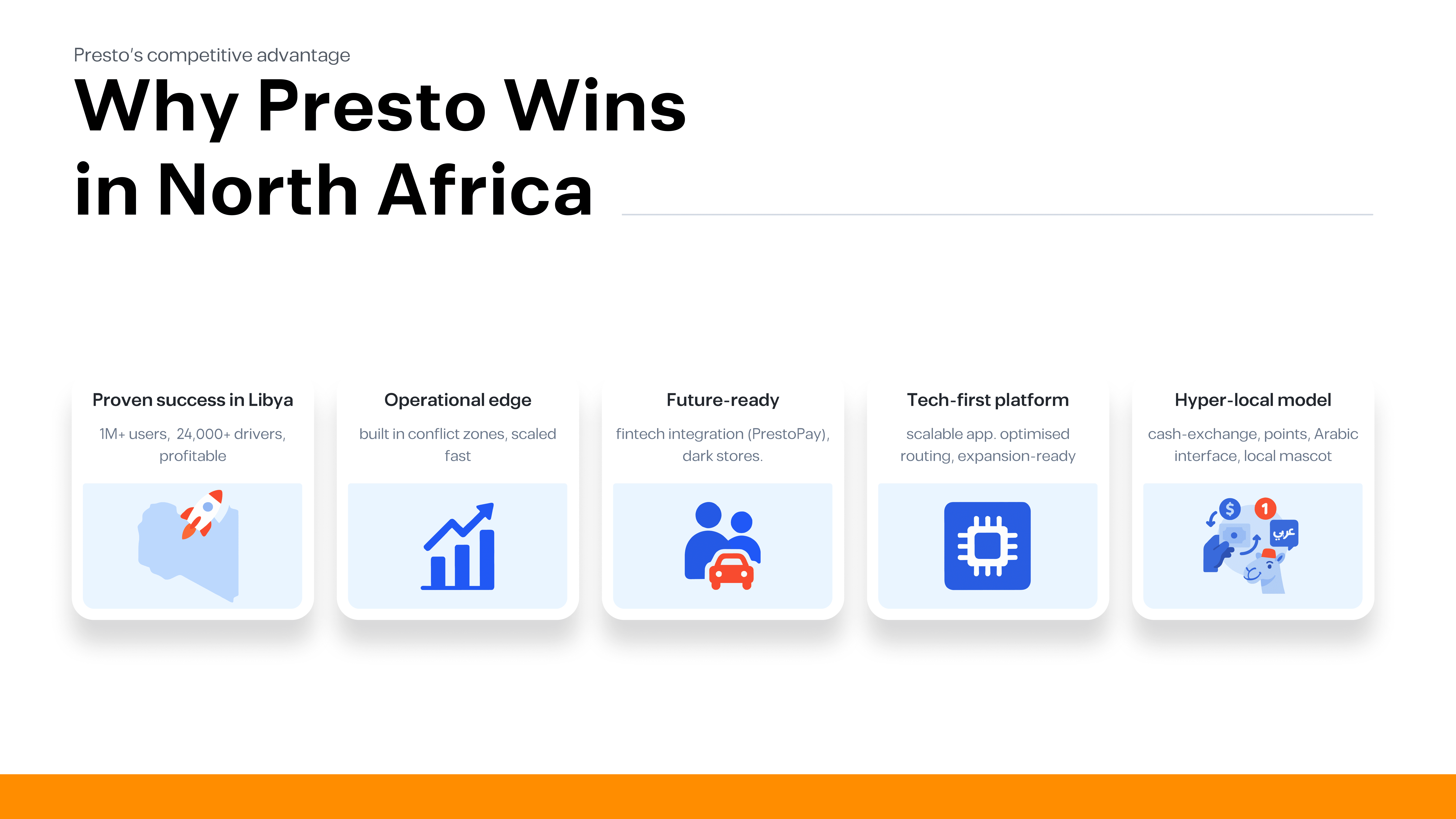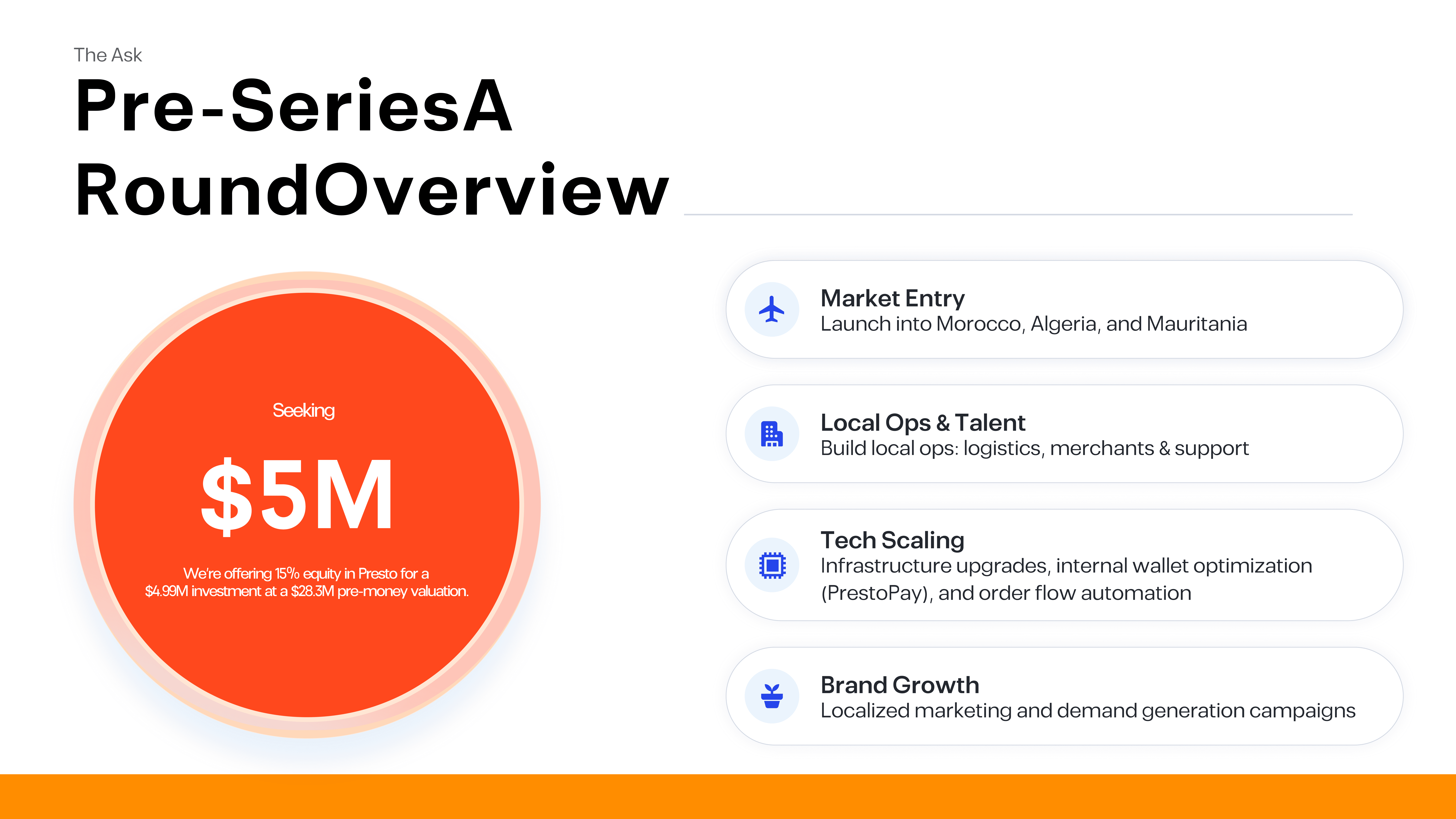 Presto’s CEO needed a compelling investor pitch deck to present the company to venture capital firms. I collaborated closely with the CEO to shape the narrative, research the investment landscape, and design the full presentation.